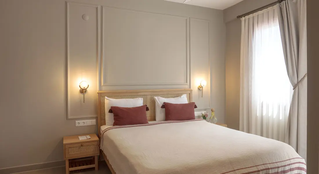 You will feel the North Aegean, Cunda Island and the "Exchange" in every detail of the rooms, which take their name from the Turkish villages on the opposite coast, equipped with wooden furniture made by the valuable artisans of Ayvalık, and decorated with photographs of Ayvalık and the Exchange.